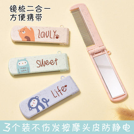 创意随身可爱卡通折叠小梳子带镜子随身镜化妆镜梳妆迷你便携梳子热门设计联盟服务商
